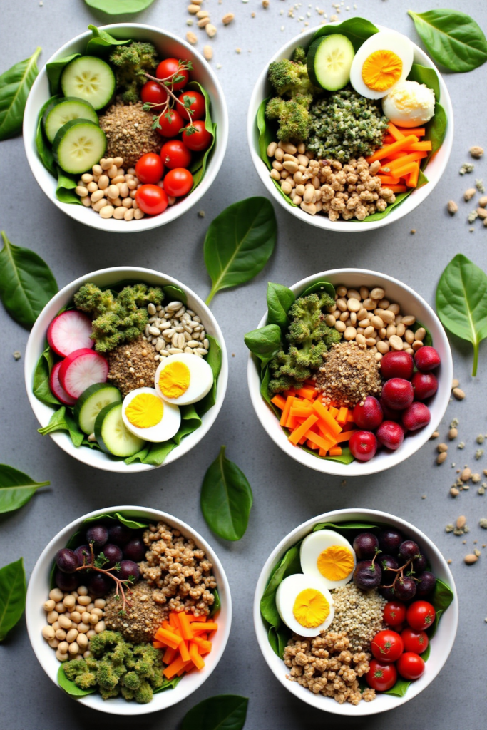 - Assemble bowls: Start with the grain base, add protein, then layer on veggies. Garnish with toppings and drizzle with dressing or sauce.
