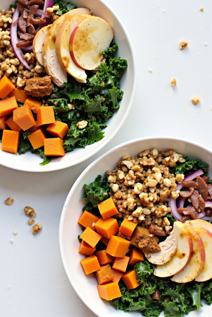 Start with your favorite hearty grain—farro, quinoa, brown rice, or barley work beautifully here. Pile on an assortment of roasted autumn vegetables, crisp apple slices, and a sprinkling of toasted nuts or seeds. Drizzle generously with the maple cinnamon vinaigrette just before serving. For added protein, top with grilled chicken, chickpeas, or roasted tofu for a complete, balanced meal.
