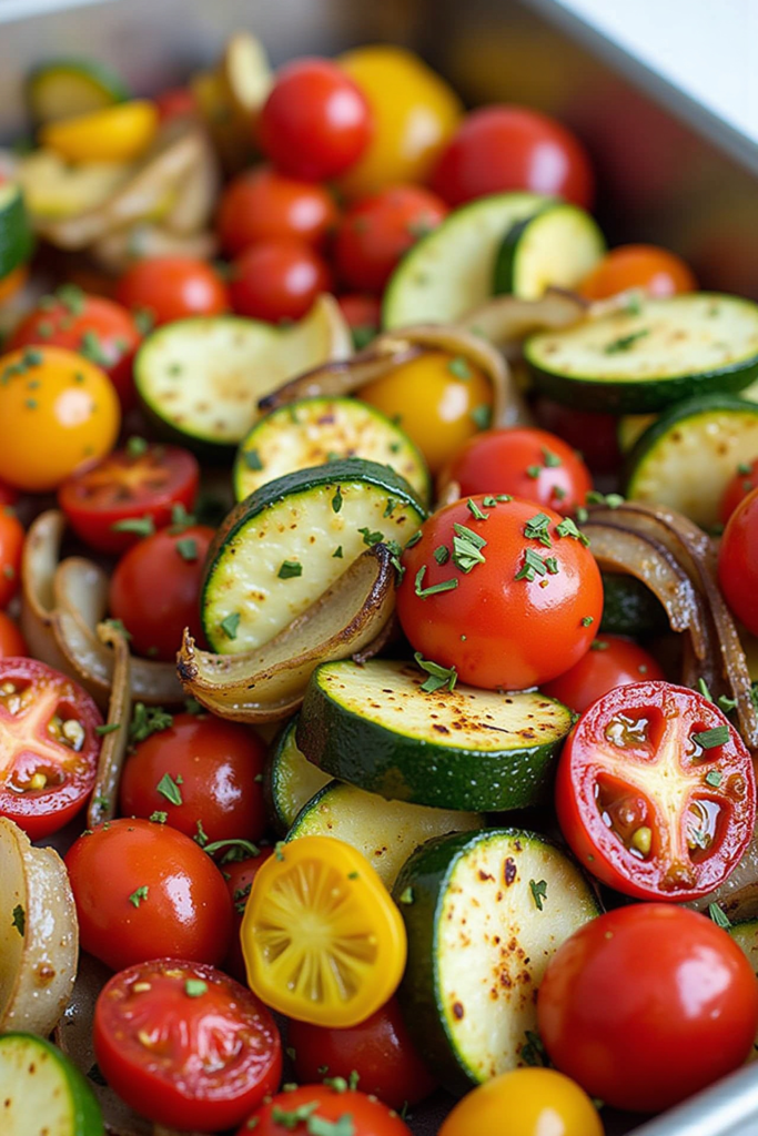 The magic of this dish lies in the blend of vegetables—zucchini, bell peppers, eggplant, cherry tomatoes—all tossed with olive oil, garlic, and classic Mediterranean spices like oregano and thyme. A quick roast in a hot oven brings out their natural sweetness and ensures perfect tenderness. For an added kick, a sprinkle of feta or a squeeze of fresh lemon right before serving brings the flavors to life.