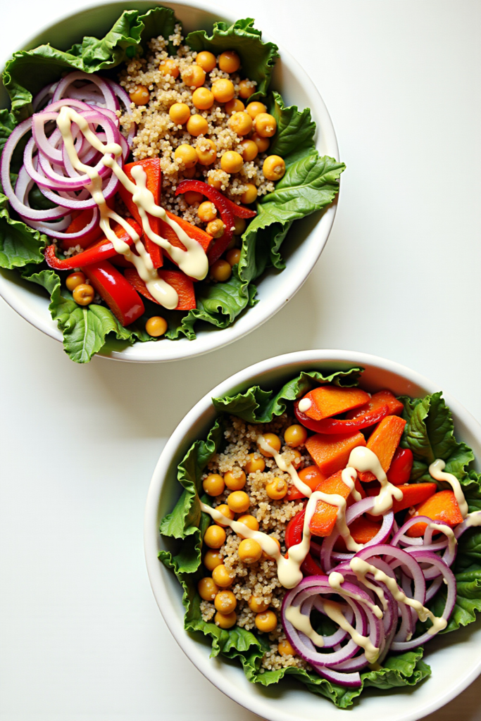 Serve Vibrant Harvest Bowls family-style so everyone can build their own, or prep several bowls ahead for grab-and-go lunches during the week. For parties or gatherings, create a DIY harvest bowl bar with different veg, proteins, and dressings, allowing guests to tailor their bowls to their tastes. Pair your bowl with a sparkling citrus beverage or infused iced tea for a complete, revitalizing meal.